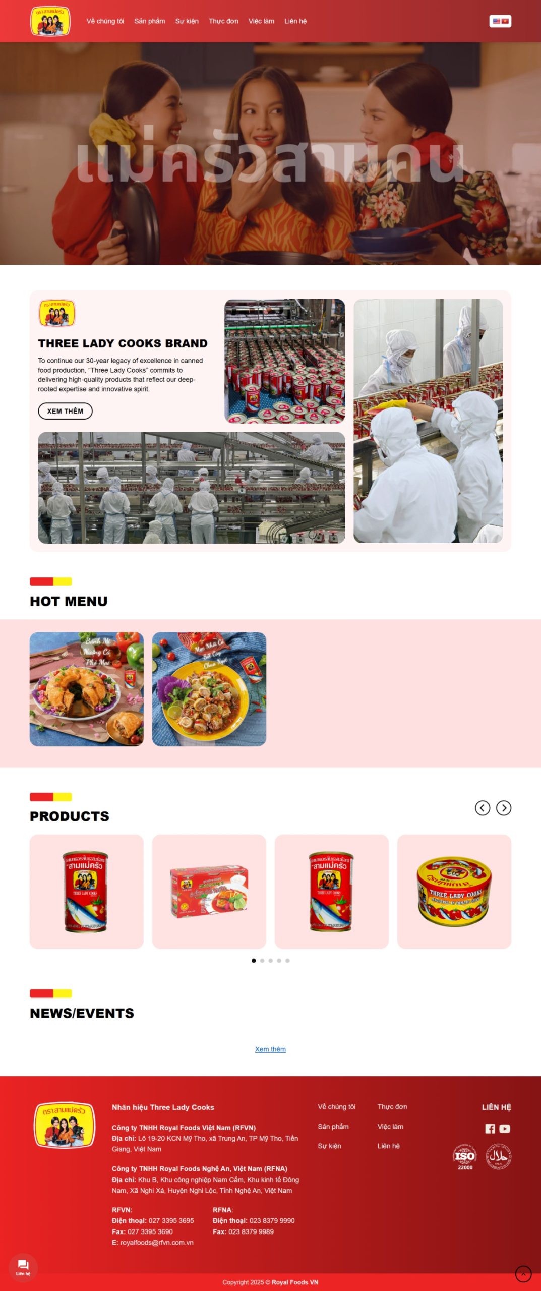 Website giới thiệu sản phẩm Three Ladycooks Brand