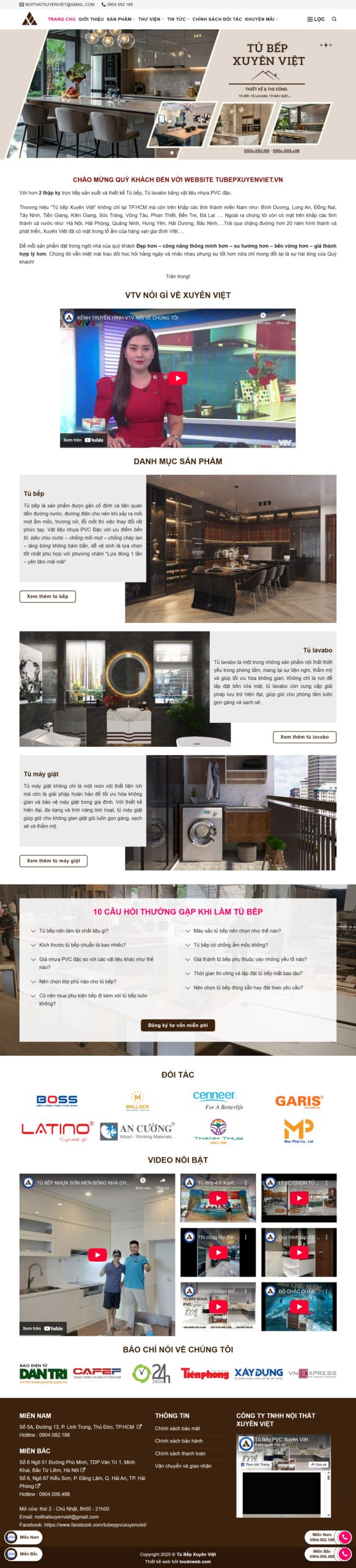Website giới thiệu sản phẩm tủ bếp Xuyên Việt
